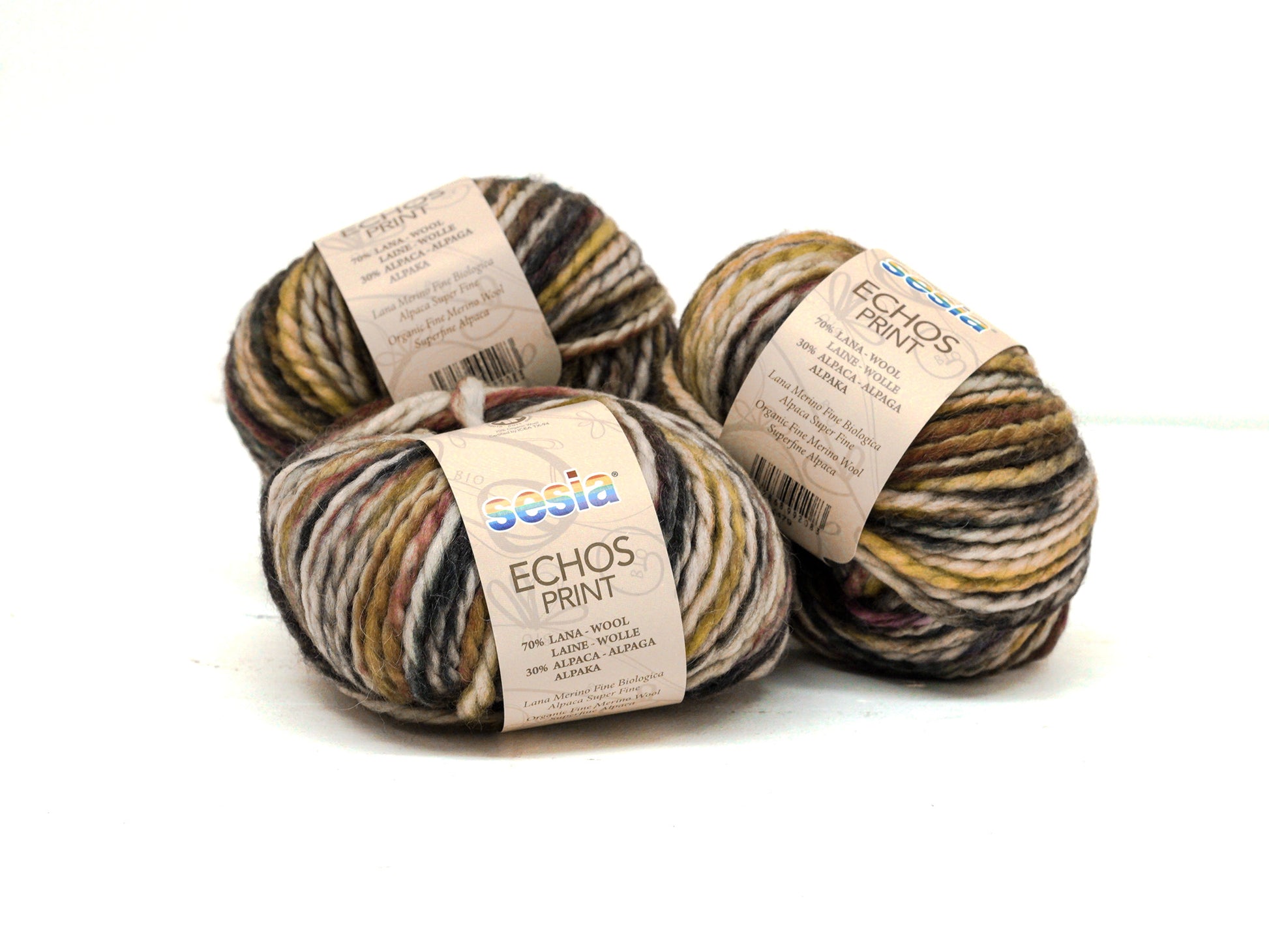 Soft, warm, and luxurious, SESIA ECOS Print Yarn is ideal for all your handmade creations. With its beautiful texture and rich blend of wool and alpaca, you can knit anything you imagine – from cozy hats, gloves, vests, and scarves to stylish home décor elements. Unleash your creativity and bring your ideas to life!